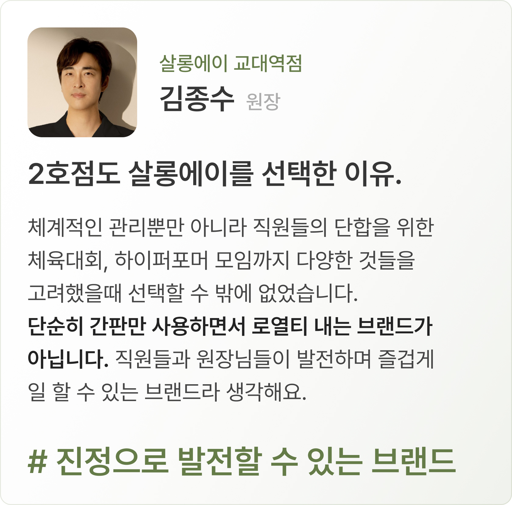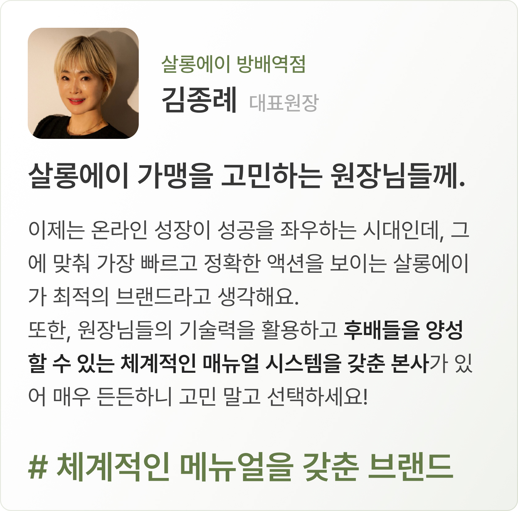함께 만들어 나가는 프랜드차이즈 살롱에이