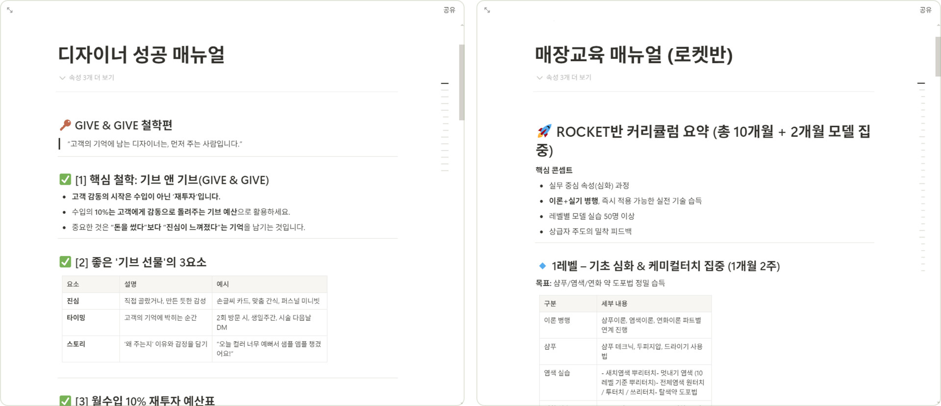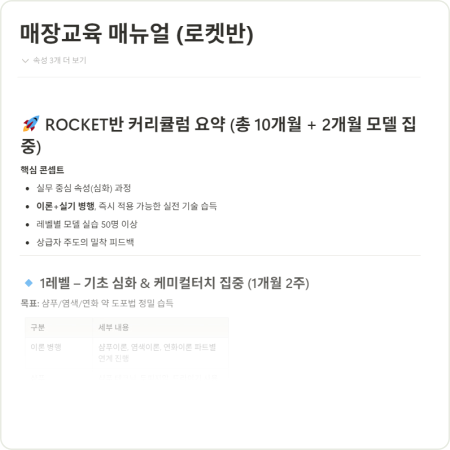 디자이너 기술 교육, 매장 운영에 필요한 마인드 교육까지