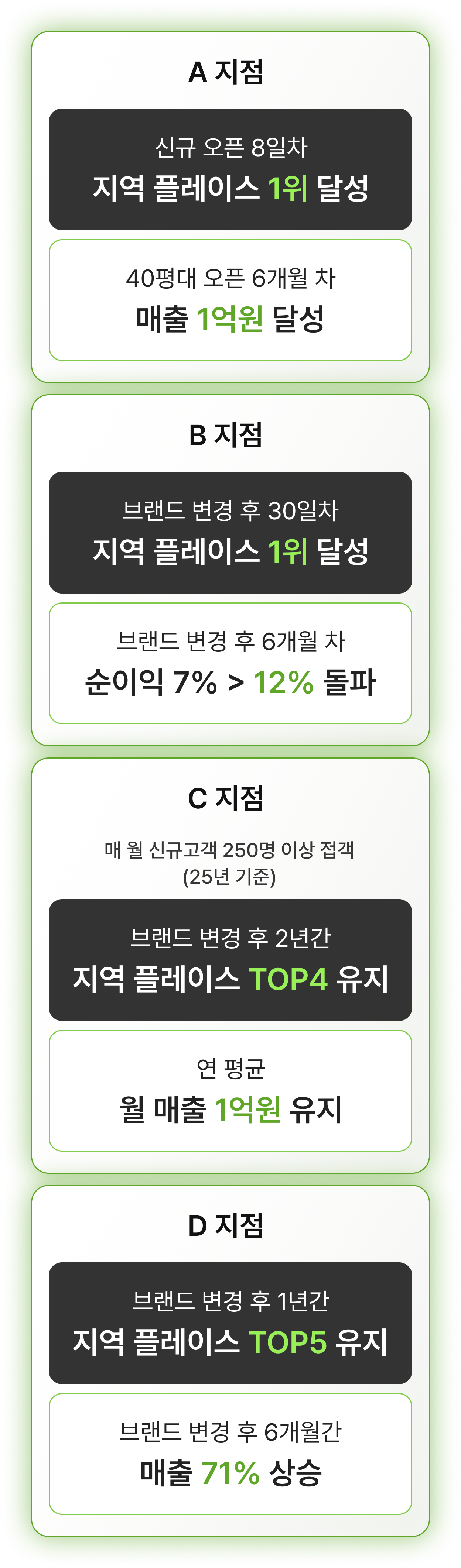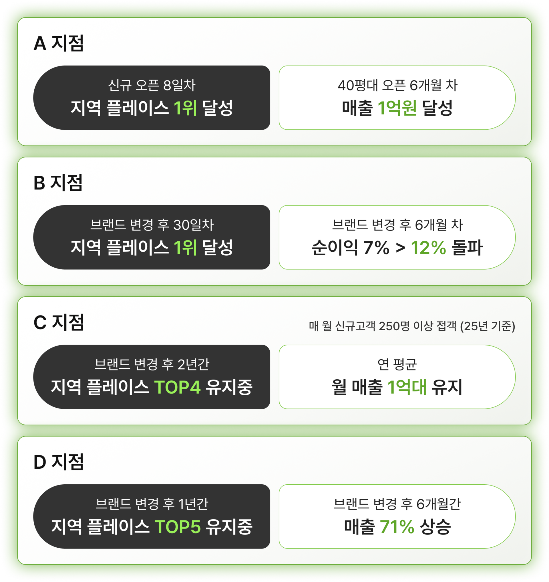원장님이 오직 현장에만 집중할 수 있도록 본사 상주 마케팅 전문가들의 네이버 플레이스 상위 점유, 모객 광고 운영, 브랜드 SNS 광고 운영에 대한 다양한 전략이 준비되어 있습니다.